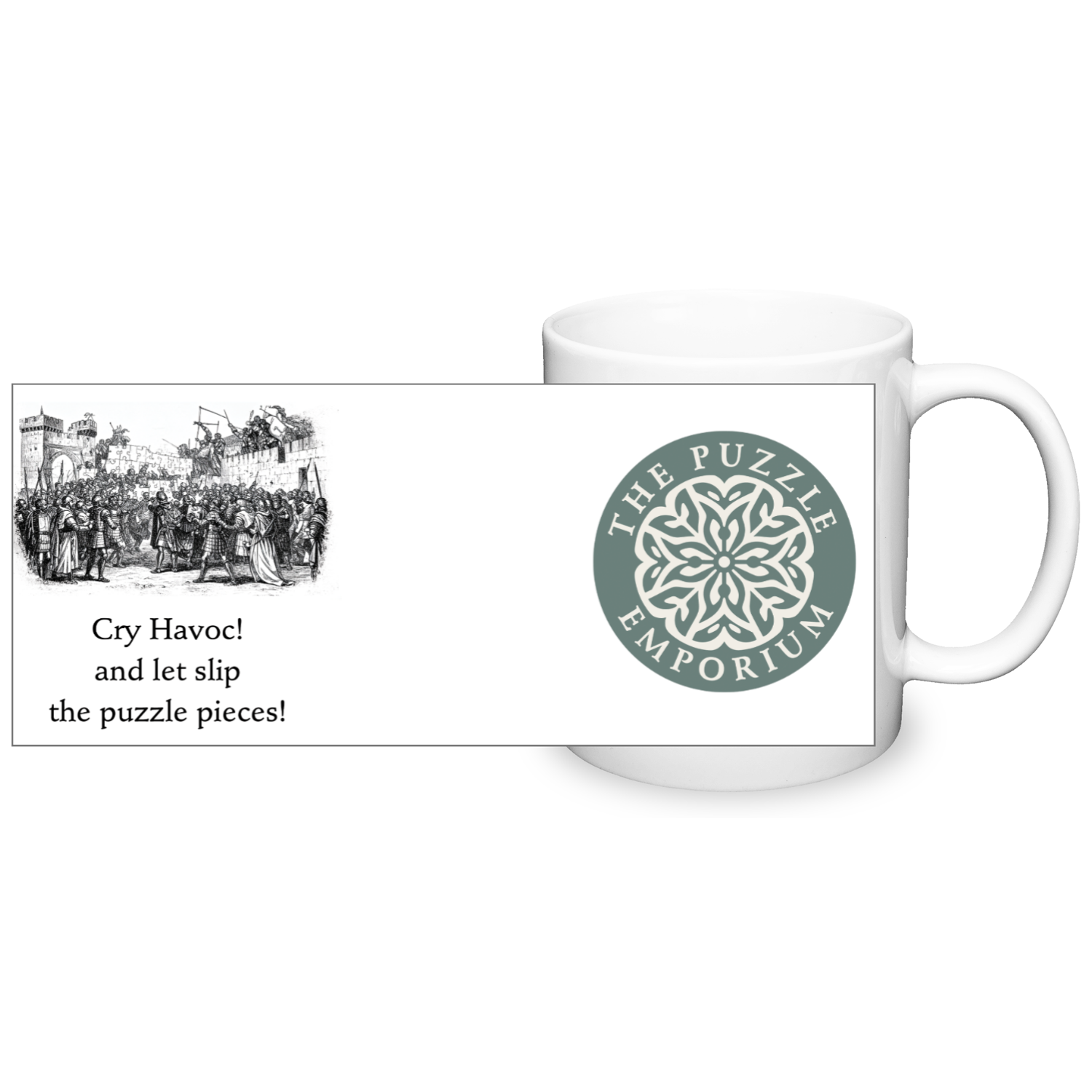 This mug is your loyal companion through every puzzling campaign be it a thousand-piece siege or a skirmish over sky fragments. Designed in the signature Puzzle Emporium style, it captures that unique intersection of literary wit and puzzling chaos.