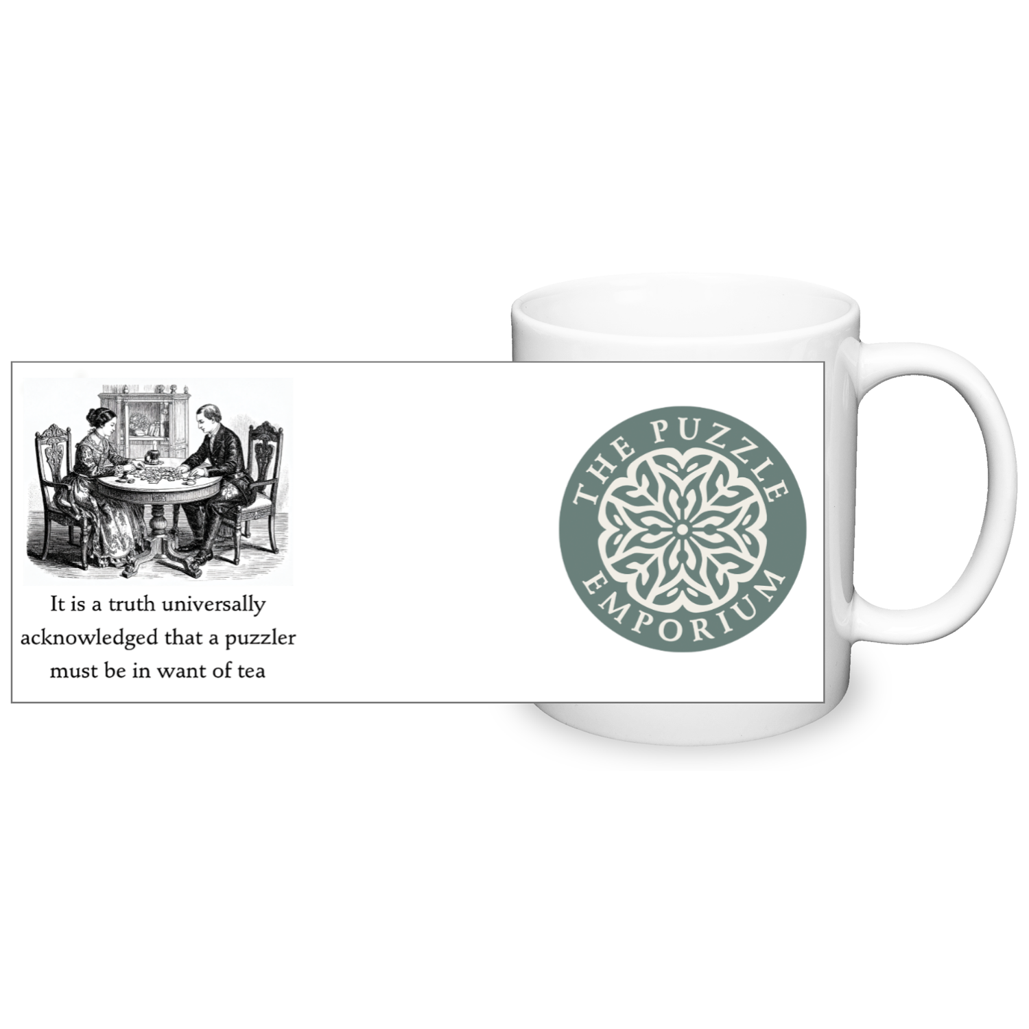It is, indeed, a truth universally acknowledged that no puzzler can proceed without a proper cup of tea. This splendid 11oz (330ml) ceramic mug, adorned with whimsical Puzzle Emporium wit, is crafted for those refined moments when only tea and jigsaws will do. Boasting a gloriously bright finish and printed front and back for maximum delight, this mug is both dishwasher safe and durably packaged to arrive in pristine condition. A perfect companion for birthdays, retirements, or any civilised tea-fuelled puzzling session. A marvellous blend of humour, craftsmanship, and everyday practicality.